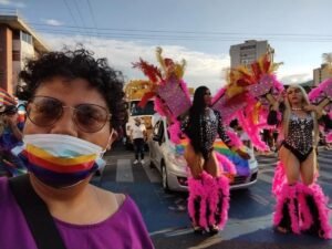 En este clip, Adry narra que su activismo social y cultural inicia en el año 2000 en el barrio Siloé, donde impulsa procesos educativos y culturales desde las bibliotecas comunitarias de Tierra Blanca, Brisas de Mayo, El Cortijo y 7 de Agosto, promoviendo la diversidad y el deporte como herramientas de transformación social. En 2015 empieza a frecuentar la Loma de la Cruz, espacio clave en la defensa del derecho LGBTIQ+ al uso del espacio público frente a la persecución policial. A partir de allí, fortalece su activismo enfocado en mujeres lesbianas y bisexuales, fundando y participando en organizaciones como FRIDAIRIS, la Mesa Territorial de Mujeres, Safo Colectiva Feminista, la Mesa LB, Tamboras Insurrectas y la Ruta Pacífica de Mujeres, visibilizando las luchas y realidades específicas de las mujeres LB.